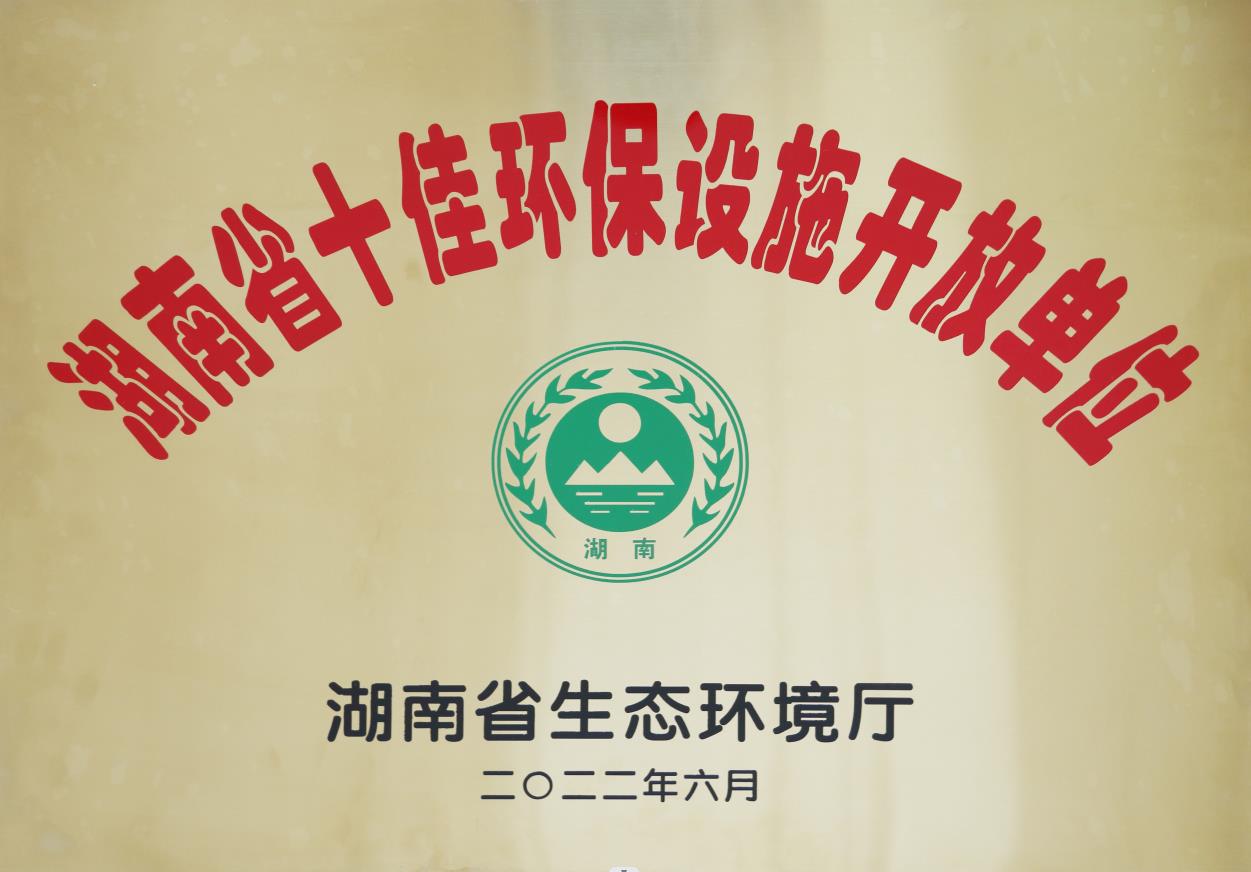 2022年6月被湖南省生態(tài)環(huán)境廳授予“湖南省十佳環(huán)保設施開放單位”